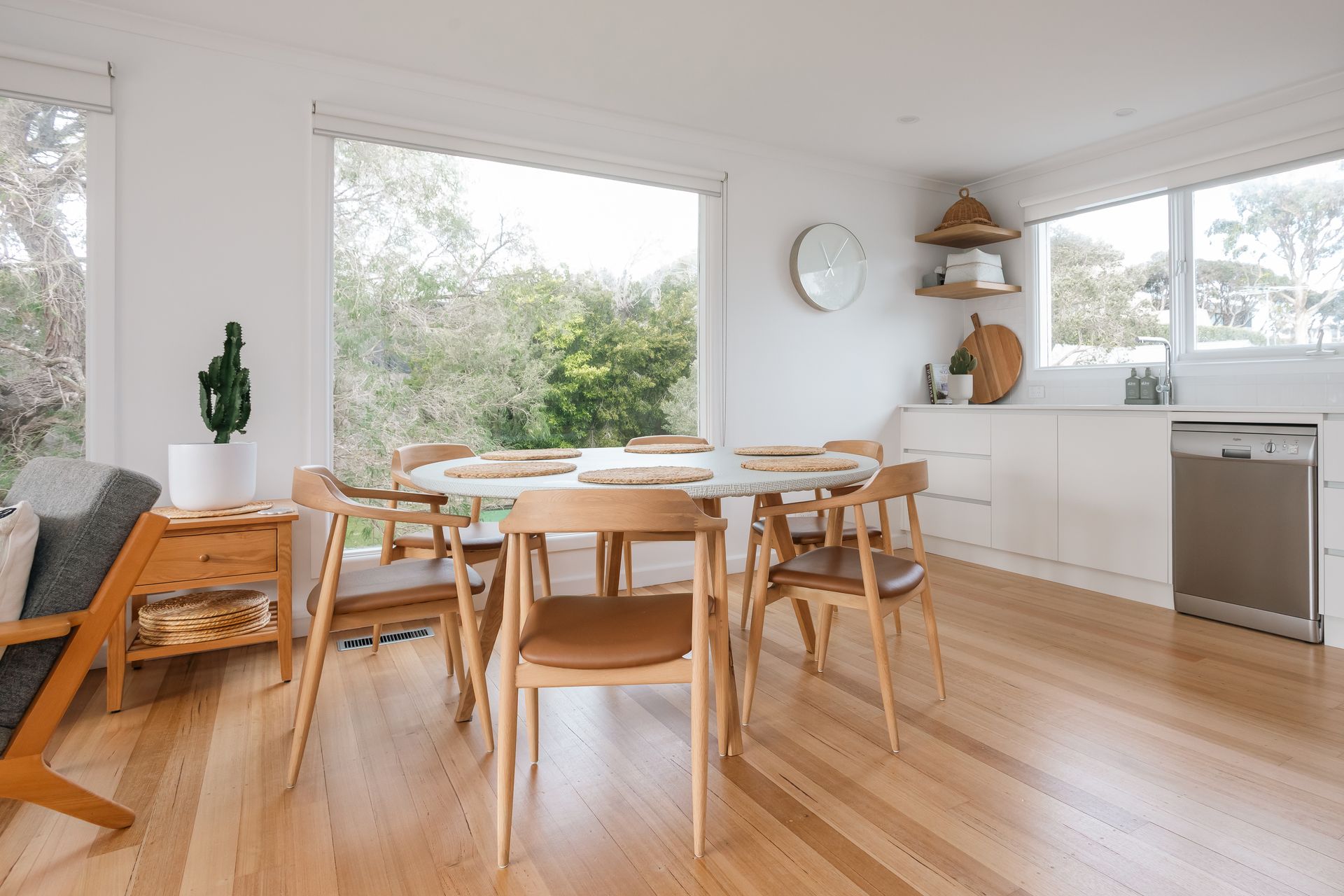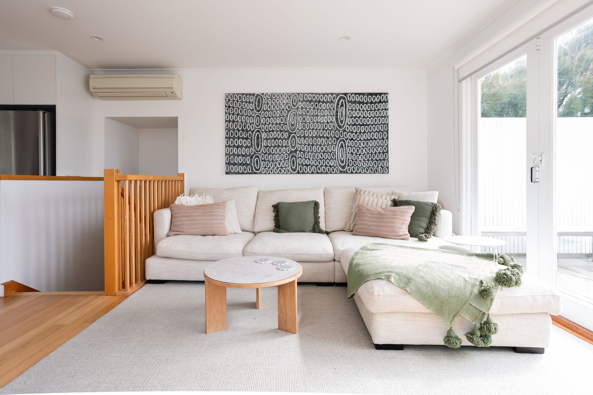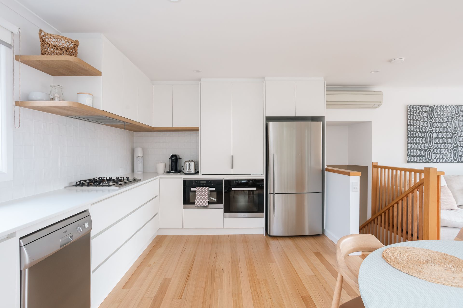 Spread over three levels and stylishly refurbished for superb holiday living, rejoice in this premier position close to the sailing club and only a couple of minutes from restaurants and boutiques, golf courses and beaches. With echoes of the past, the entry level includes a large master bedroom , a walk in robe and en suite, while two other bedrooms include built in robes and share the main bathroom. A short flight of stairs leads up to the main living area and a cleverly designed kitchen with stainless steel cooking appliances and an open fireplace that keeps things cosy in winter, along with a split system. Upstairs also includes a wide balcony that basks in northerly sun with sea views and a large picture window framing a view of the rear garden. The lower level offers a second living area with TV, with French doors onto a garden deck which opens out to the back yard with a generous size trampoline.