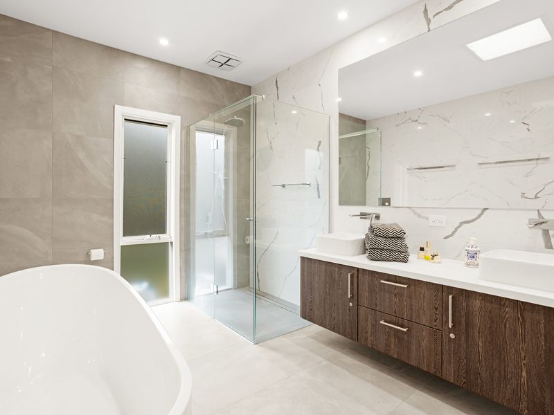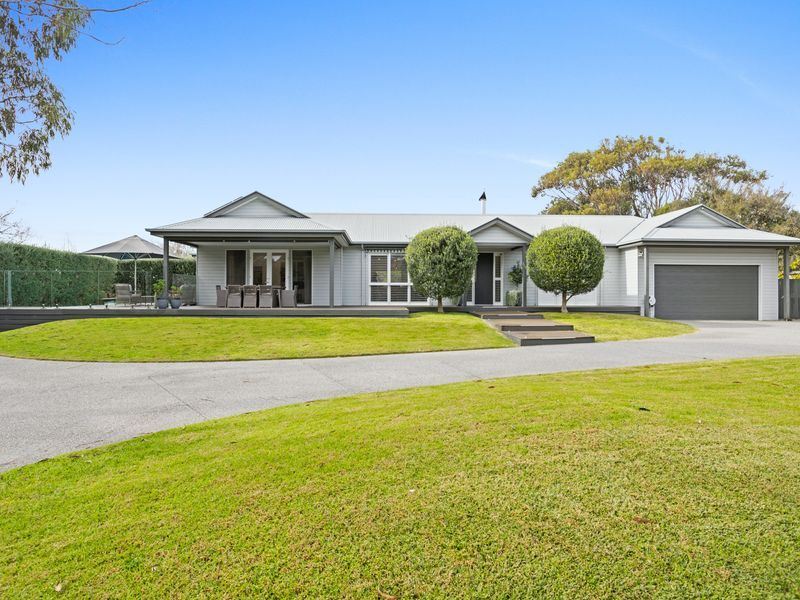 Outdoors, the allure continues with a full-size mod grass tennis court and a sparkling solar-heated, salt-chlorinated swimming pool surrounded by decking, alongside a large outdoor spa. Choose between alfresco entertaining decks or the paved area beside the undercover outdoor kitchen, perfect for firing up the BBQ.