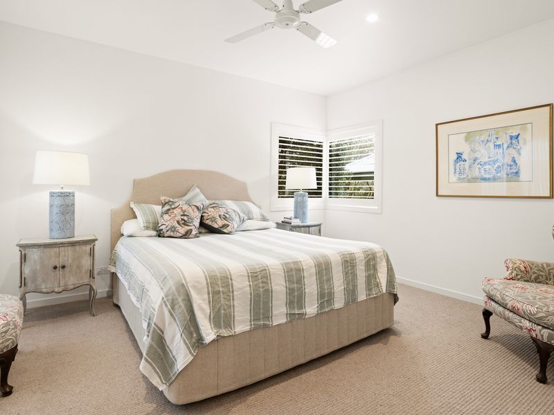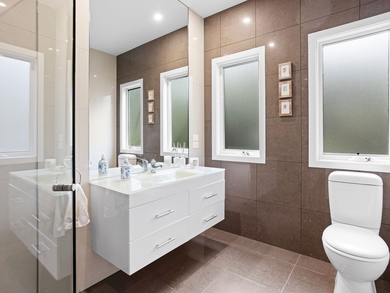 Ideal for families, the third living area doubles as a children's retreat, nestled amidst the bedrooms. The master bedroom, privately zoned, features a full ensuite and access to the pool deck, along with mirrored built-in wardrobes. two other bedrooms are complemented by their own ensuite.