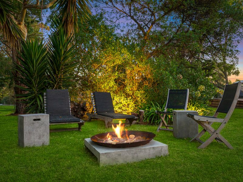 The wow factor is effortless as each of the living areas connects seamlessly to the full length deck, and expansive manicured lawns. The centre of the house is the designer kitchen with quality appliances. Entertaining is a delight in the open plan living space which harnesses a relaxed vibe with European oak flooring throughout that flows onto the spacious deck with BBQ. 5 Burner BBQ (Natural Gas Connection) Features include Four bedrooms Two bathrooms Two living areas Gas Heated Swimming Pool Outdoor Dining Table x 10 Chairs 3 x Umbrellas 6 x Sunlounges Pool Deck 2 x Timber Sunlounges in Garden 4 x Butterfly Chairs 4 x Chairs surrounding firepit