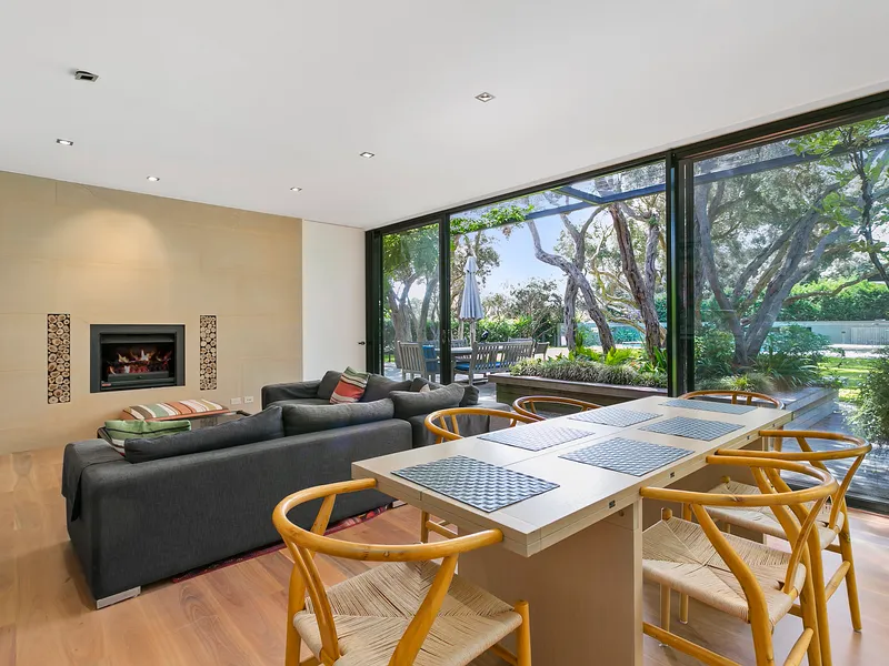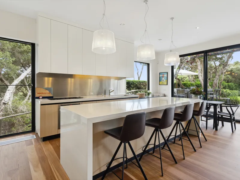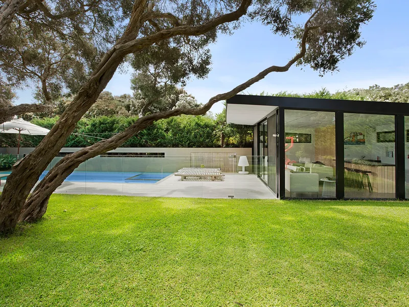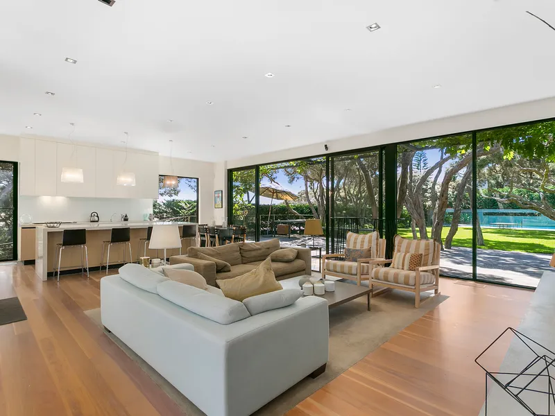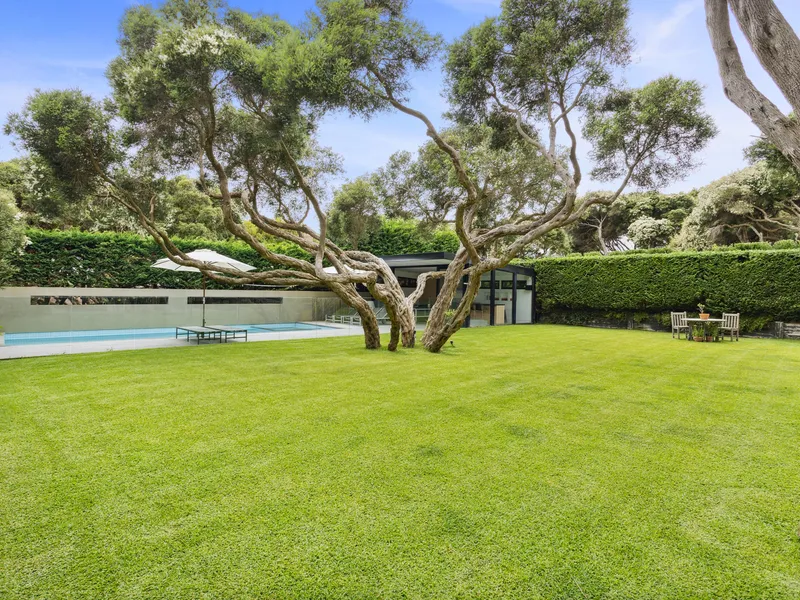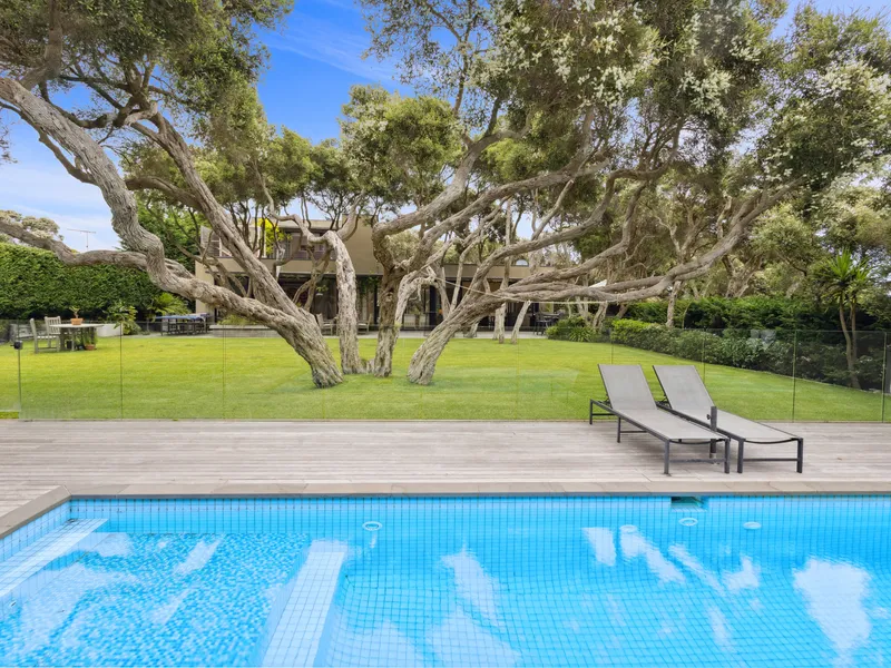 Spectacularly crafted over two luxurious levels and finished to the highest possible standards, oriented to the large expanse of private lawn and outdoor space, this contemporary residence provides the perfect family retreat. With a focus on bringing the garden indoor through framed views, the residence is flooded with natural light. The lower floor comprises the kitchen and informal living area which spectacular vistas to the outdoors, a separate formal dining and second living area are both seamlessly connected to the stunning alfresco terrace via full size sliding doors. The alfresco spills onto a vast private lawn and then to the fully detailed pool house with solar-heated, fully tiled pool and spa. The residence comprises five bedrooms, including two upstairs main suites, with fitted walk-in robes, and ensuites opening onto a large private north facing sun terrace, perfect for a quieter sunbathe. This highly coveted location allows you to effortlessly wander down to Shelley Beach. Please call with any queries, 5 Bedroom, 2 x Kings, 2 x Queens and 2 x bunks ( sleep 4, larger than standard single) 5 Bathrooms ( each with toilet and shower) incl 2 ensuites A/C & Heating Alarm