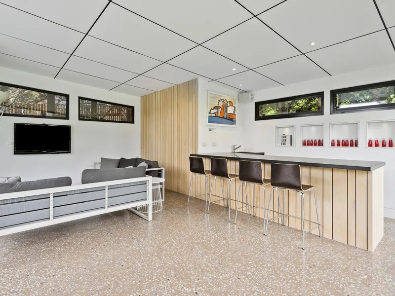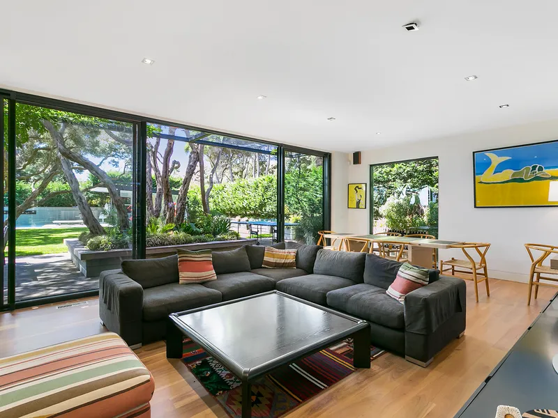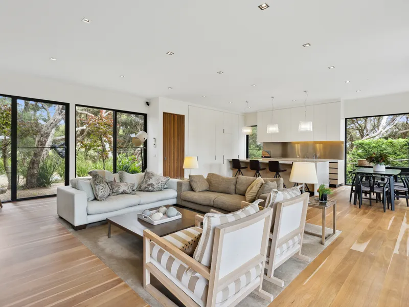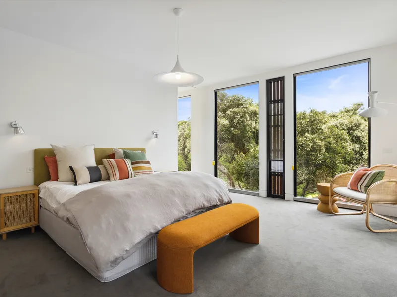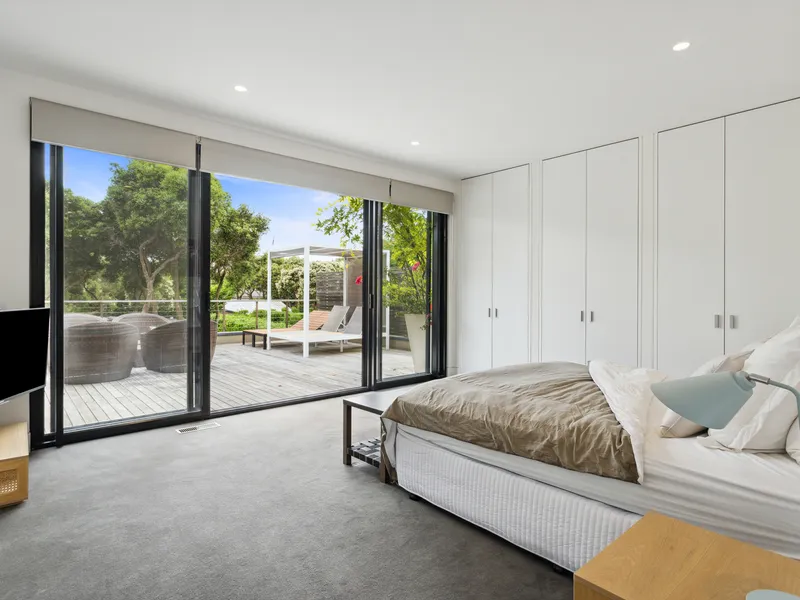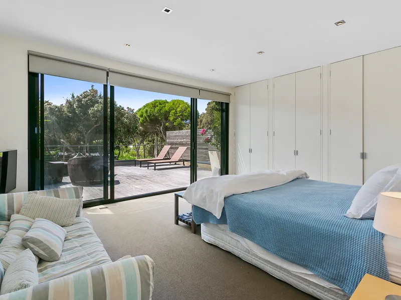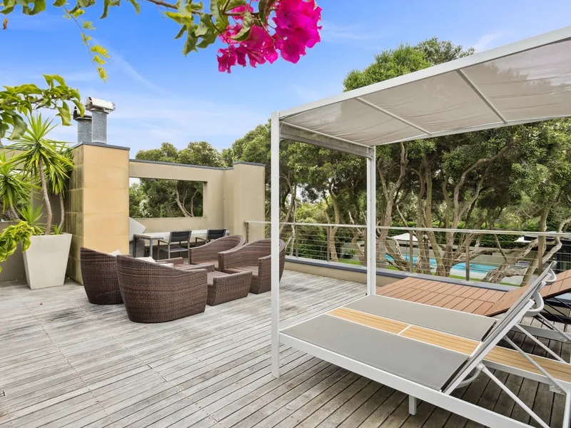 Spectacularly crafted over two luxurious levels and finished to the highest possible standards, oriented to the large expanse of private lawn and outdoor space, this contemporary residence provides the perfect family retreat. With a focus on bringing the garden indoor through framed views, the residence is flooded with natural light. The lower floor comprises the kitchen and informal living area which spectacular vistas to the outdoors, a separate formal dining and second living area are both seamlessly connected to the stunning alfresco terrace via full size sliding doors. The alfresco spills onto a vast private lawn and then to the fully detailed pool house with solar-heated, fully tiled pool and spa. The residence comprises five bedrooms, including two upstairs main suites, with fitted walk-in robes, and ensuites opening onto a large private north facing sun terrace, perfect for a quieter sunbathe. This highly coveted location allows you to effortlessly wander down to Shelley Beach. Please call with any queries, 5 Bedroom, 2 x Kings, 2 x Queens and 2 x bunks ( sleep 4, larger than standard single) 5 Bathrooms ( each with toilet and shower) incl 2 ensuites A/C & Heating Alarm