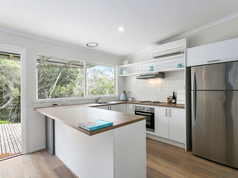 Nestled in the tree tops this cute 3 bedroom cottage offers complete privacy. Very neat with beach floorboards and neutral colours throughout it has all the creature comforts for a lovely beach retreat. Features include: wood burning fire, split system heating/cooling, BBQ area and double carport. With spacious decks at both front and back you can chase the sun all day.