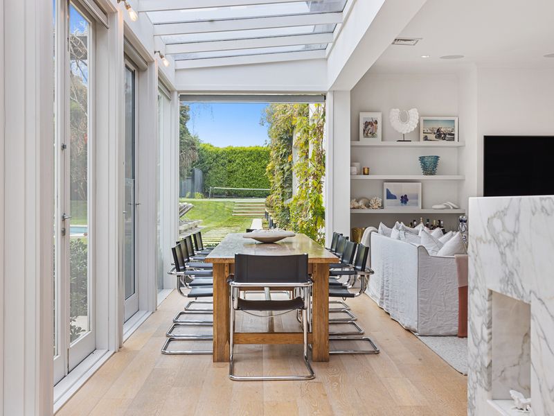 Escape to the expansive outdoor living spaces, where a symphony of nature awaits. Enjoy alfresco dining on the terrace, savoring the fresh Portsea sea air as you revel in the picturesque surroundings. The fully fenced garden provides the utmost privacy, ensuring that every moment spent outdoors is a peaceful retreat.