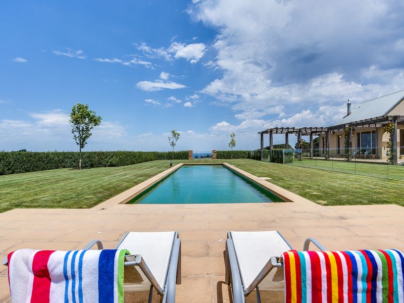 This impressive two-story country courtyard home is exclusively located in one of the most coveted positions in Flinders on 50 acres with expansive views of Western Port, Bass Strait and stunning rural landscapes. The ground floor provides , Four double bedrooms, 2 bathrooms 2 powder rooms open plan kitchen flowing onto the family room, separate formal dining room and main living room with an open fire place. doors lead you to the paved area overlooking the views The upper level includes vast main bedroom with walk in robe and ensuite With an air of timeless appeal and tasteful nuances throughout, this charming home has been lovingly maintained with impeccable detail. Features include in ground swimming pool, mod grass tennis court Ducted refrigerated air-conditioning and heating double garage and an excellent north-east aspect. Magnificent rural retreat perfect for your summer holidays Bond - payable per booking, exit cleaning fees deducted from bond. All properties let without sheets and towels - sheets and towels available to hire in Please note No Weddings are allowed at this property, family holidays only. STRA0777/23