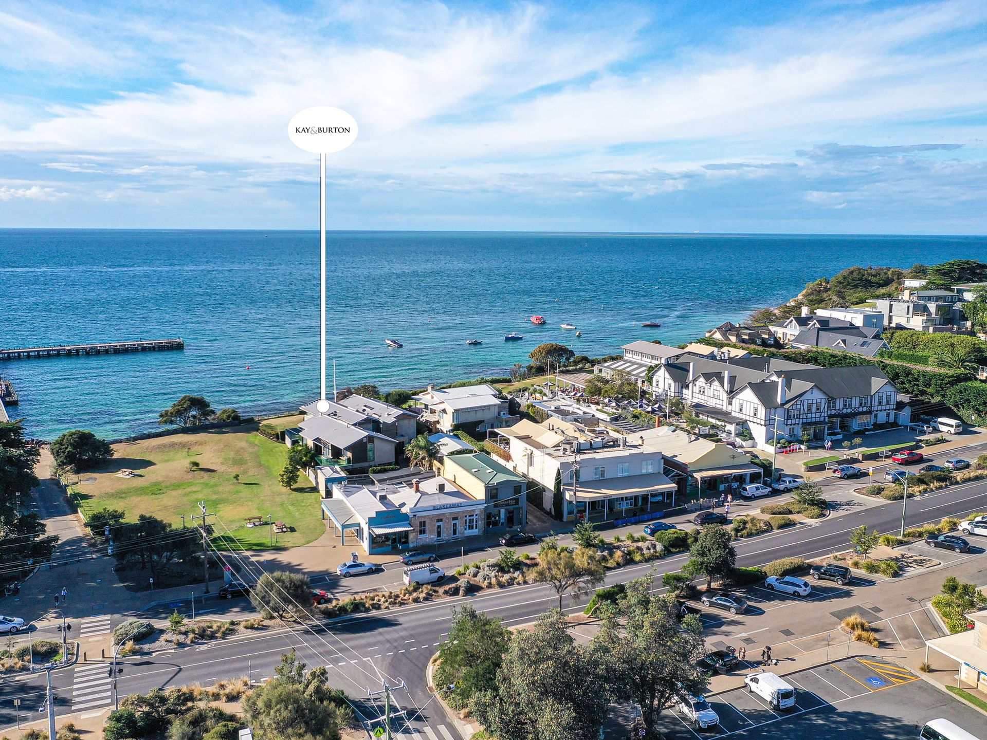 Right on the beach above the Portsea Pier, this modern and timeless two storey Town residence has waters edge views of Port Phillip Bay and the Shipping Channel. Exclusive, beachfront living with generous living areas upstairs , downstairs and outside.